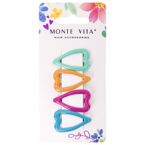 Заколки для волос НАБОР 4 шт., 3,5 см, клик-клак, сердечки, глянцевый, разные цвета, MONTE VITA (МОНТЕ ВИТА), 457082